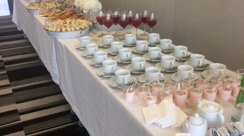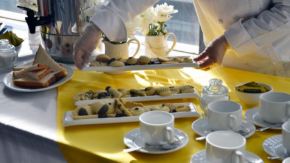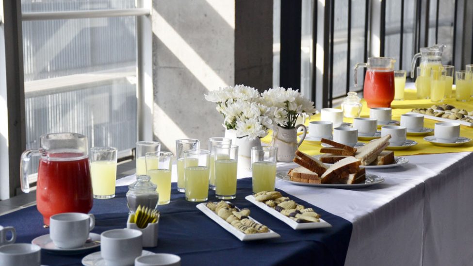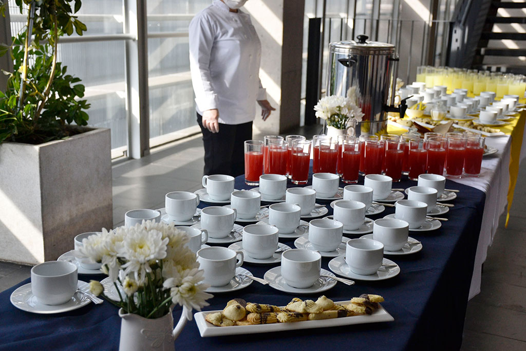 El montaje de nuestros servicios de coffee y desayunos se distinguen por su cuidado, calidad y excelente servicio. Buscamos una preparación de excelencia mediante el trabajo de un gran número de mujeres jefas de hogar, emprendedoras y pequeñas mini empresarias que ponen los toques necesarios para lograr productos que no olvidarás, se puede sentir el aroma de nuestro café de grano, té especiales, jugo de fruta natural, deliciosas media lunas, tortas, kuchenes, galletas artesanales y frescos mini sándwiches que son preparados con altos estándares de calidad.